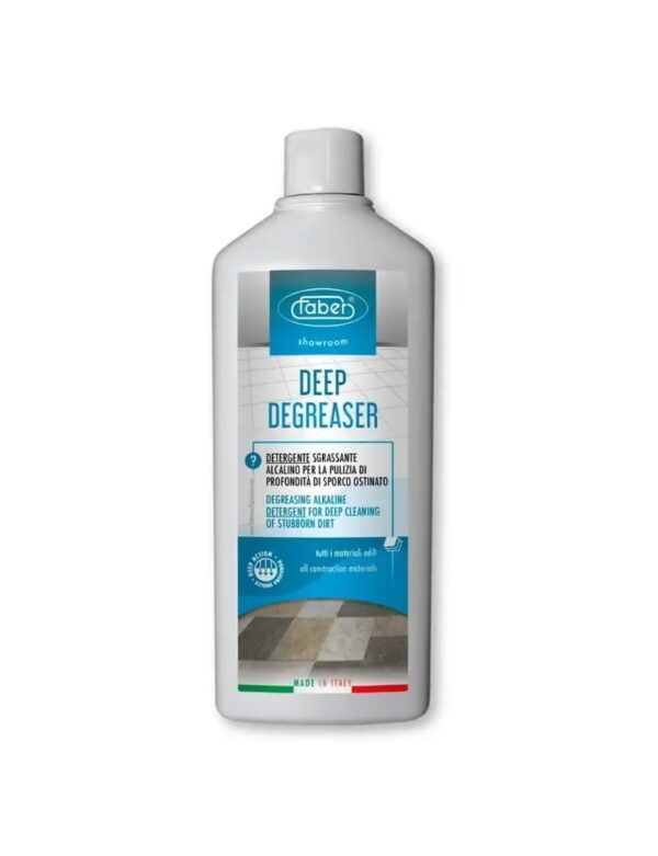Faber Deep Degreaser is a professional-strength cleaner designed for heavy-duty cleaning of porcelain, ceramic, natural stone, and all washable floors.