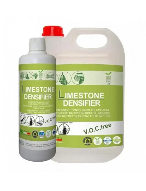 LIMESTONE DENSIFIER is a professional-grade, water-based impregnating treatment specifically engineered for limestone and lime-based substrates. Due to their high porosity and strong water absorption, these materials can be difficult to polish mechanically. The densifier penetrates deeply, reducing porosity and consolidating the stone’s structure, resulting in faster polishing, improved hardness, and a more consistent finish.