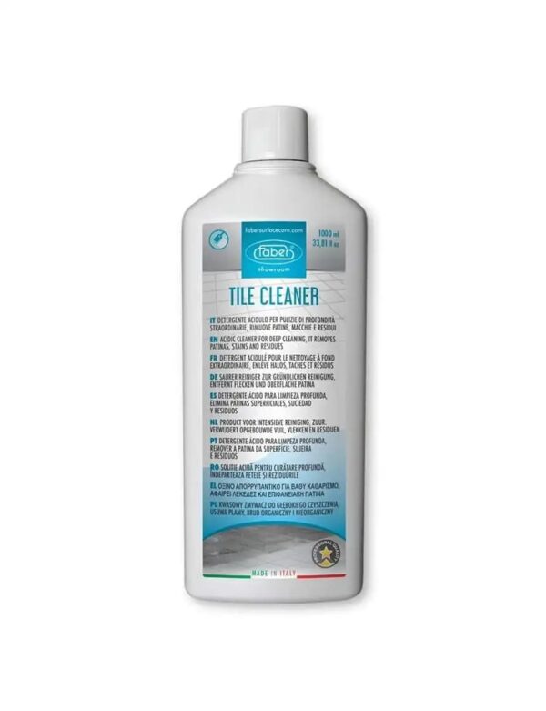 Faber Tile Cleaner is a slightly acidic, water-based cleaner designed for deep cleaning porcelain, ceramic, and other acid-resistant surfaces. It effectively removes patinas, residues, and embedded dirt, restoring tiles to their original clean and bright finish.