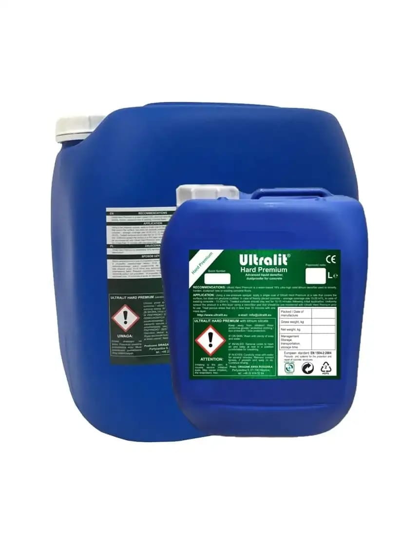 ULTRALIT HARD PREMIUM is a water-based, ultra-high solid lithium densifier that hardens, densifies, and dustproofs both new and existing concrete floors. Its active lithium content reacts with concrete to form durable calcium silicate hydrate (CSH), increasing hardness and reducing dusting.